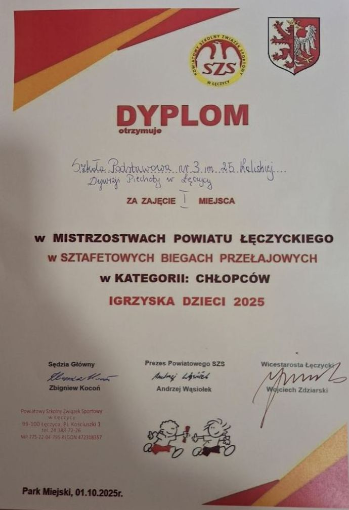 Szkołę Podstawową nr 3 w Łęczycy reprezentowali uczniowie w kategorii Igrzyska Dzieci.Obie nasze drużyny zajęły czołowe miejsca i uzyskały awans do Półfinałów Wojewódzkich, które odbędą się 6 października w Aleksandrowie Łódzkim.