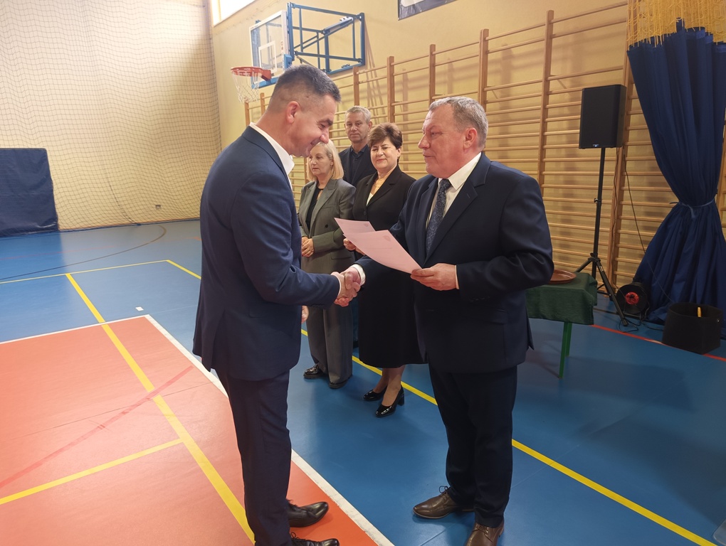 Podziękował za codzienne wspieranie uczniów, kreatywność i zaangażowanie w pracę z dziećmi i młodzieżą oraz wręczył nagrody.